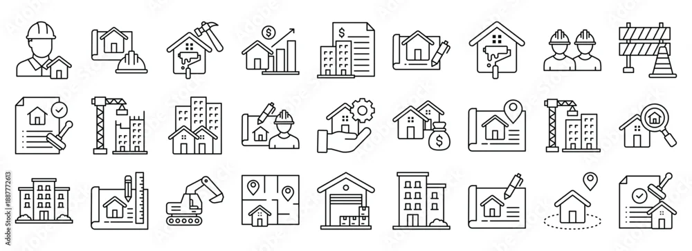 Obraz Property Development icon collection. Containing design Property Development, Built Structure, Architectural, Builder, Home Maintenance