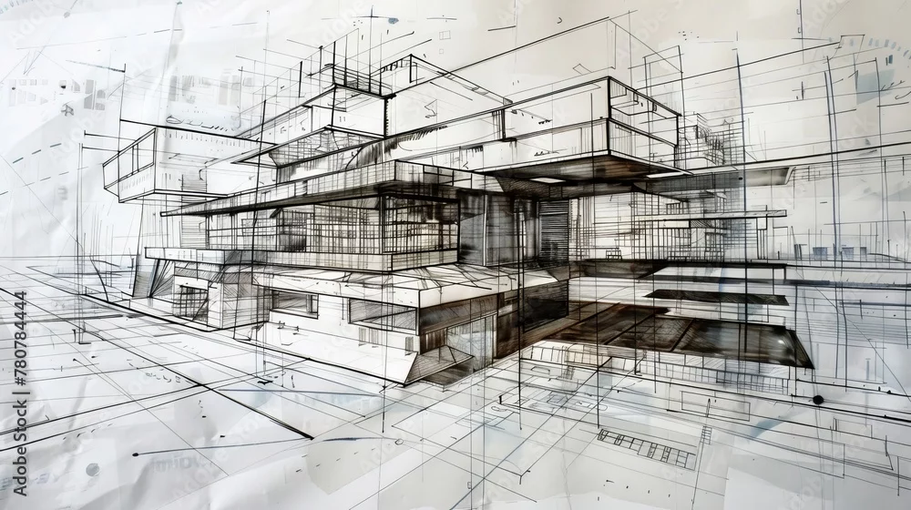 Obraz Collection of detailed architectural drawings and blueprints for construction