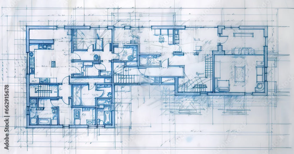Obraz Generative AI, Blue print floor plan, architectural background, technical draw