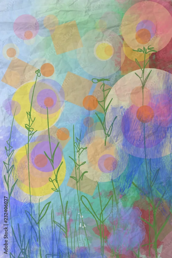 Obraz Abstract bubble dot imaginary fantasy blooms and flowers in fun colorful watercolor layers background design