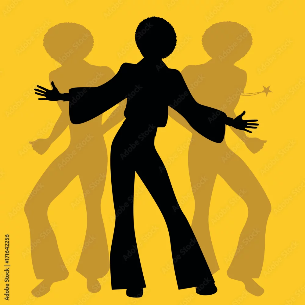 Obraz Sylwetka mężczyzn tańczących muzykę soul, funky lub disco. Styl retro. - do dyskoteki - Picturewall.pl