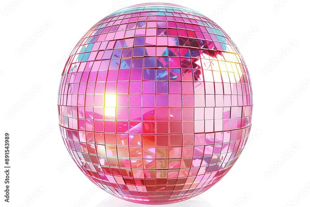 Obraz Vibrant pink disco ball reflecting colorful lights, perfect for party, dance, or celebration themes in stock photos. - do dyskoteki - Picturewall.pl