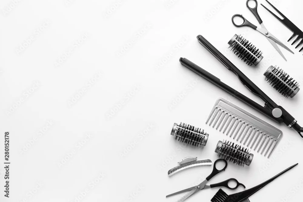 Obraz Set fryzjerów narzędzia i akcesoria na białym tle - do fryzjera - Picturewall.pl