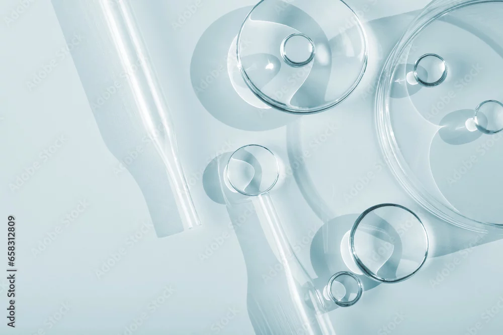 Obraz Chemical laboratory research. Abstract cosmetic laboratory. Glass model of molecules. - do gabinetu kosmetycznego - Picturewall.pl