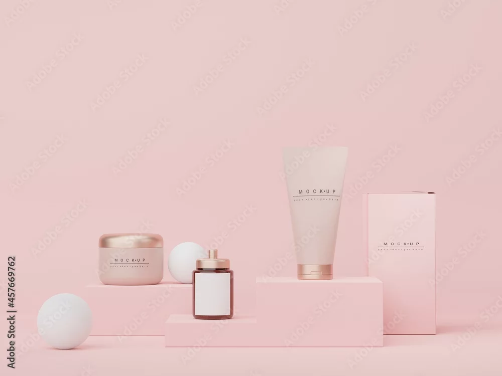 3d render of blank cosmetics skincare product or packaging for mock up. Beauty soap and spa concept. Lotion oil moisture for skin health. Premium and luxury design for branding.