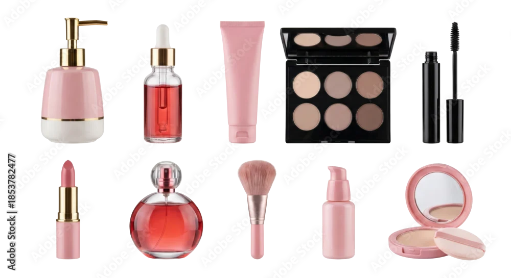 Obraz elegant collection of makeup and beauty essentials arranged on isolated transparent background