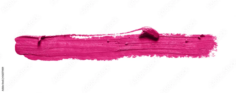 Obraz Pink lipstick stroke smudge swatch isolated on white background. Color makeup brush stroke close up. Creamy cosmetic product texture - do gabinetu kosmetycznego - Picturewall.pl