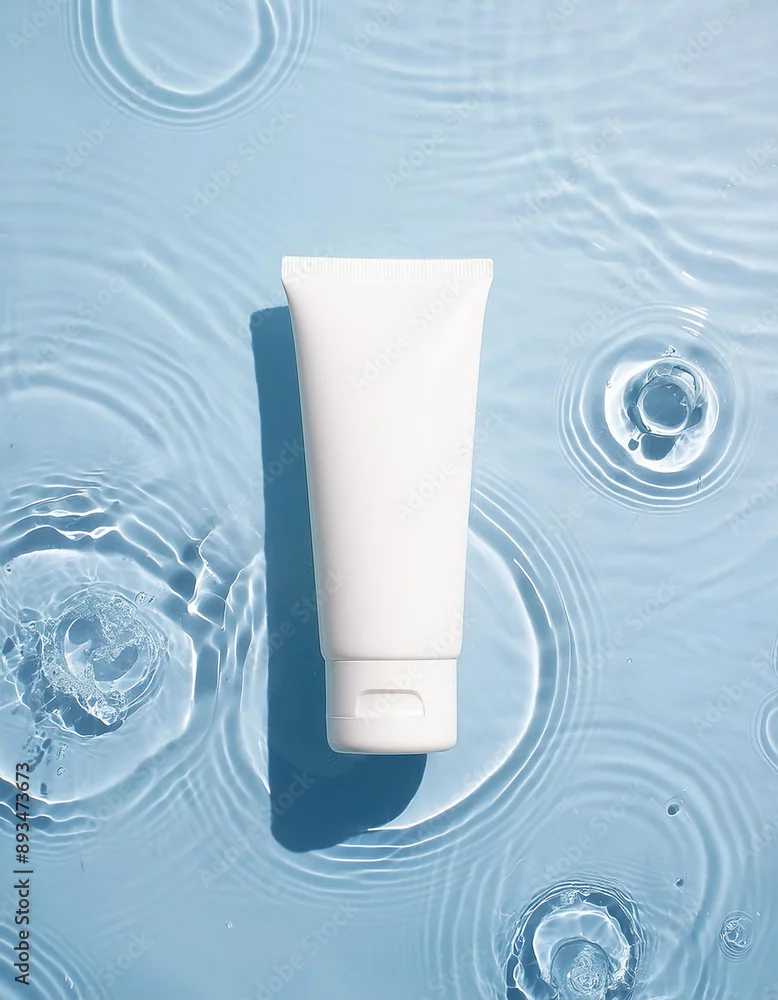 Obraz White cosmetic tube gracefully floating on rippled water. Beauty and skincare product promotion