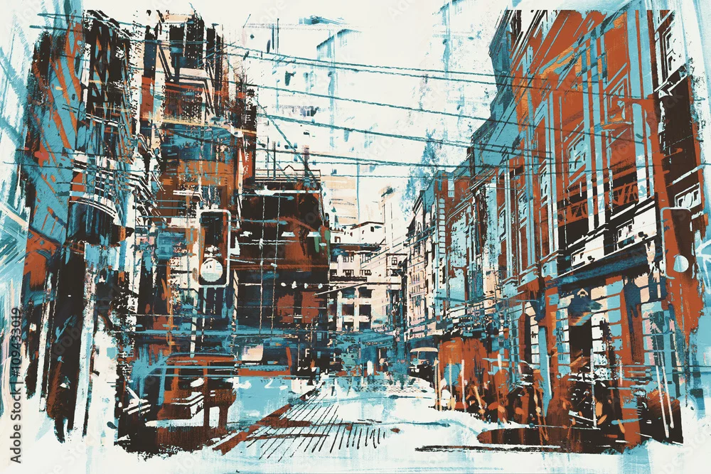 Obraz ilustracyjny obraz miastowa ulica z grunge teksturą