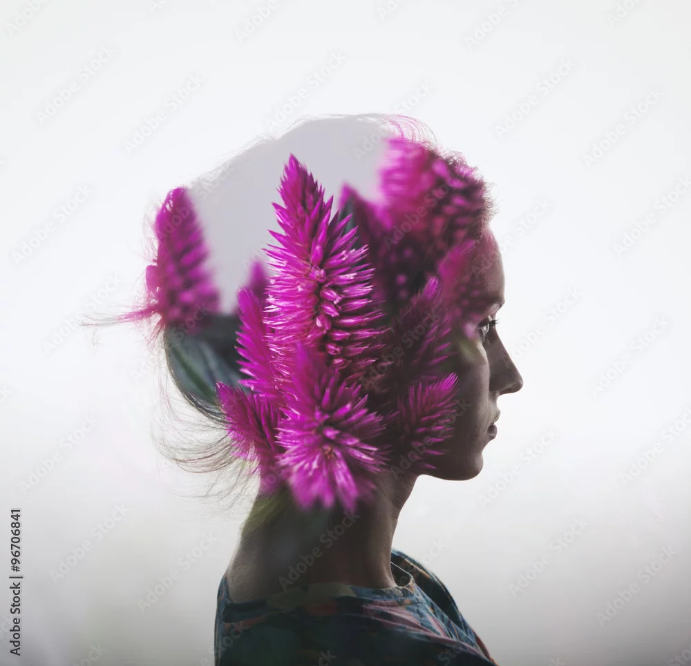 Obraz Kreatywnie podwójna ekspozycja z portretem młodej dziewczyny i kwiatów