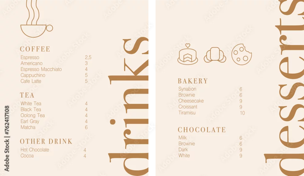 Obraz Cafe brochure vector, coffee shop menu design. Restaurant menu design. Drink and Dessert menu