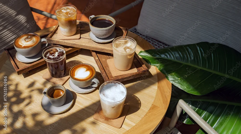 Obraz many menu type of coffee set on wooden table - do kawiarni - Picturewall.pl