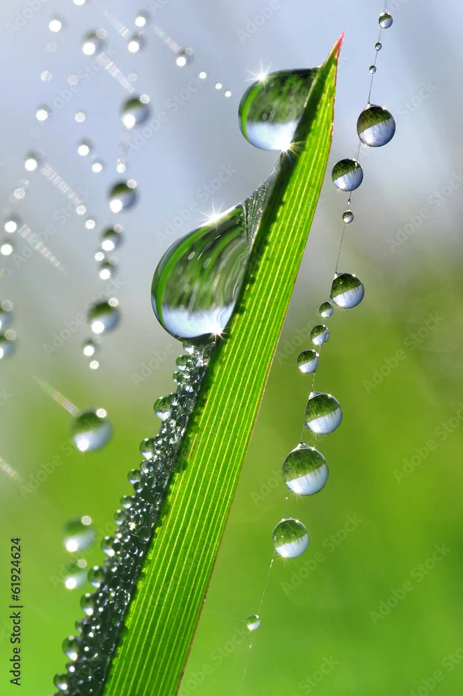 Obraz Świeża trawa z rosa kropel zamkniętym up