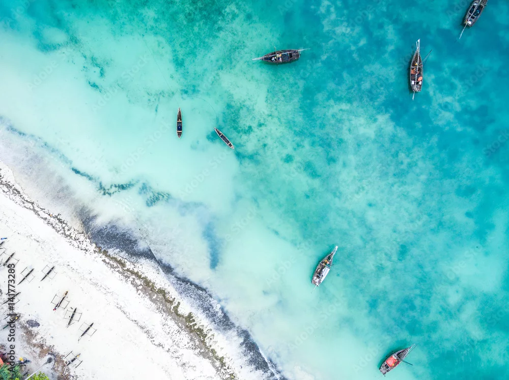 Obraz widok z góry na piękną plażę z łodziami rybackimi