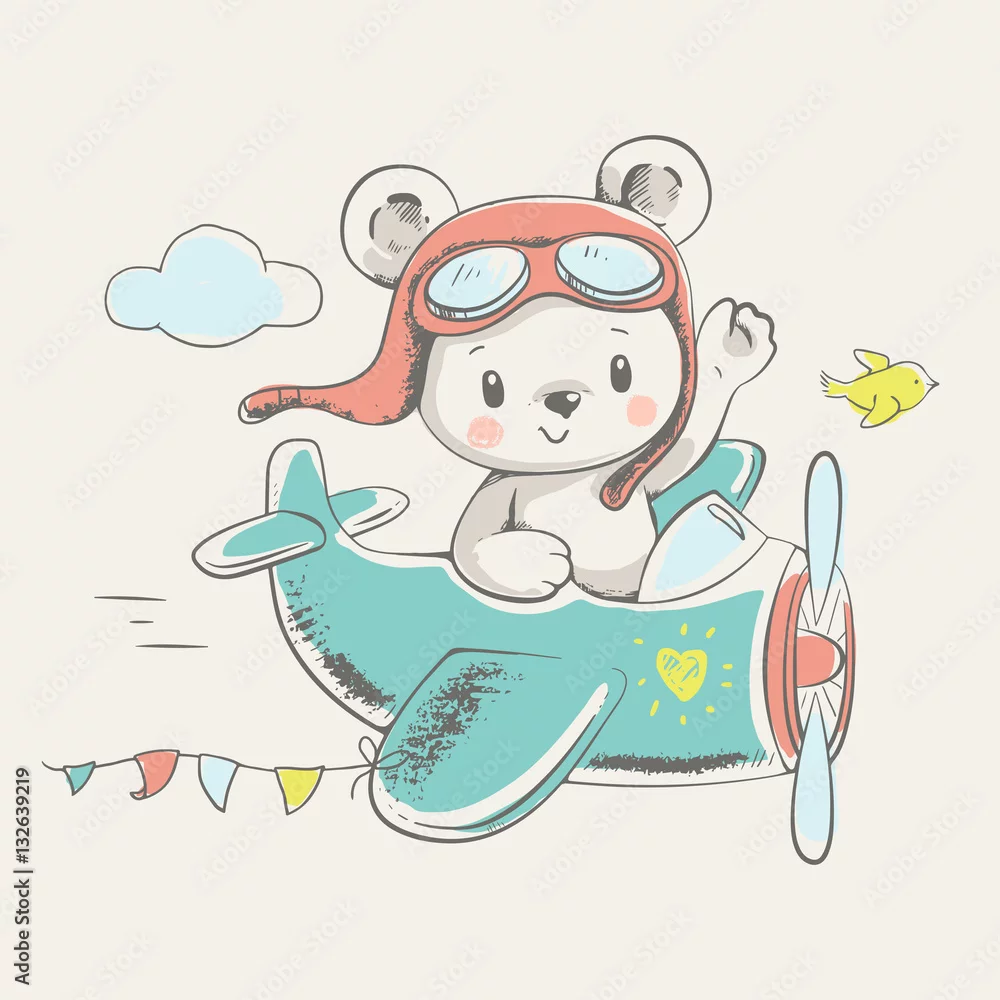 Obraz miś lecący samolotem