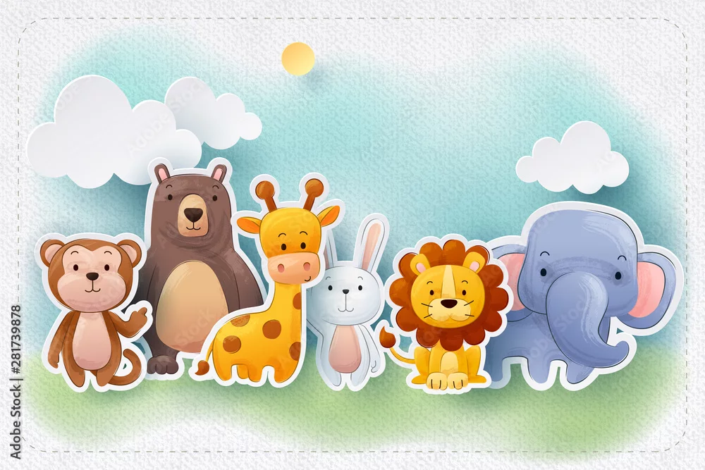 Obraz Papierowe rzemiosło z kolor wody zwierząt zoo kartkę z życzeniami
