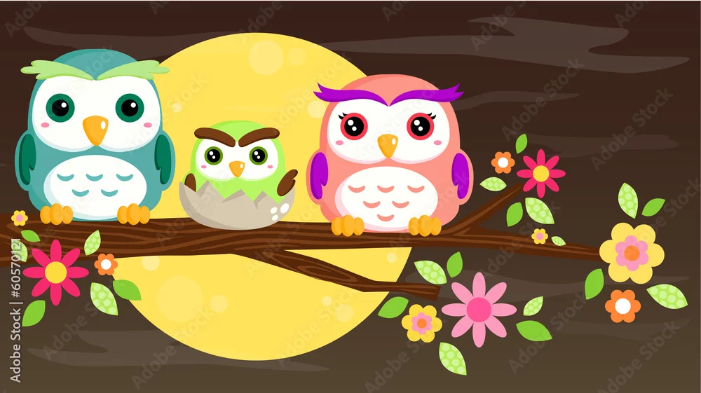 Obraz Rodzina Sowa - do pokoju dziecka - Picturewall.pl