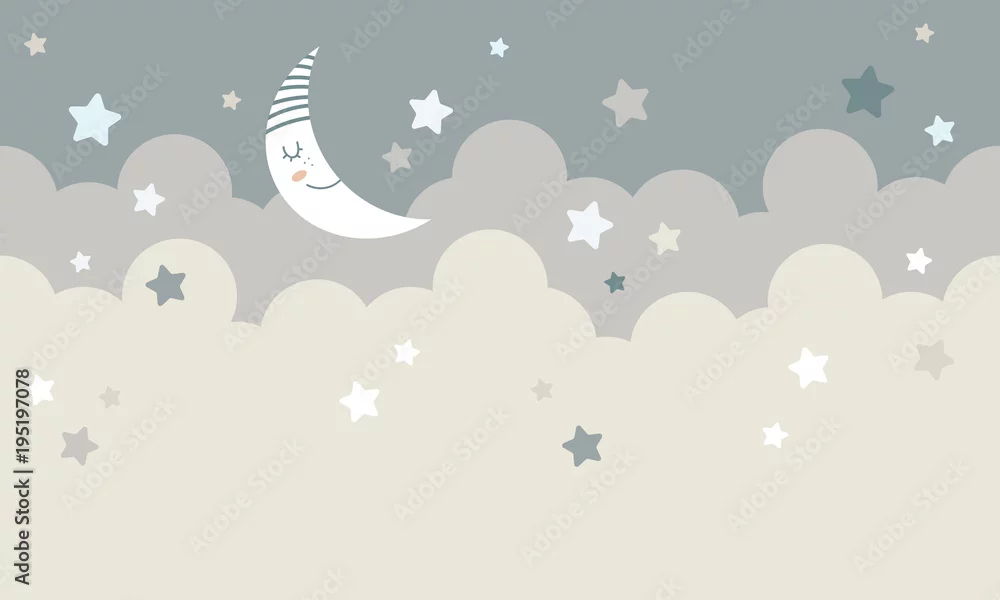 Obraz śpiący księżyc wśród chmur i gwiazd