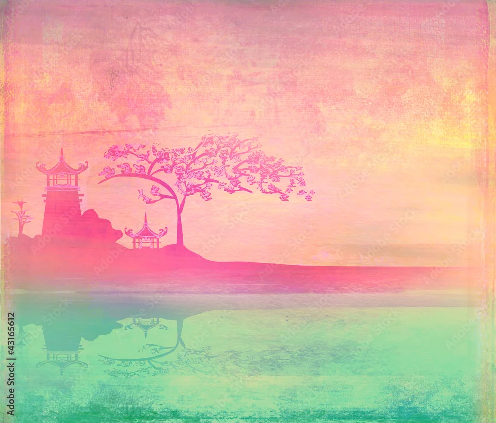 Obraz namalowany azjatycki krajobraz - do przedpokoju - Picturewall.pl