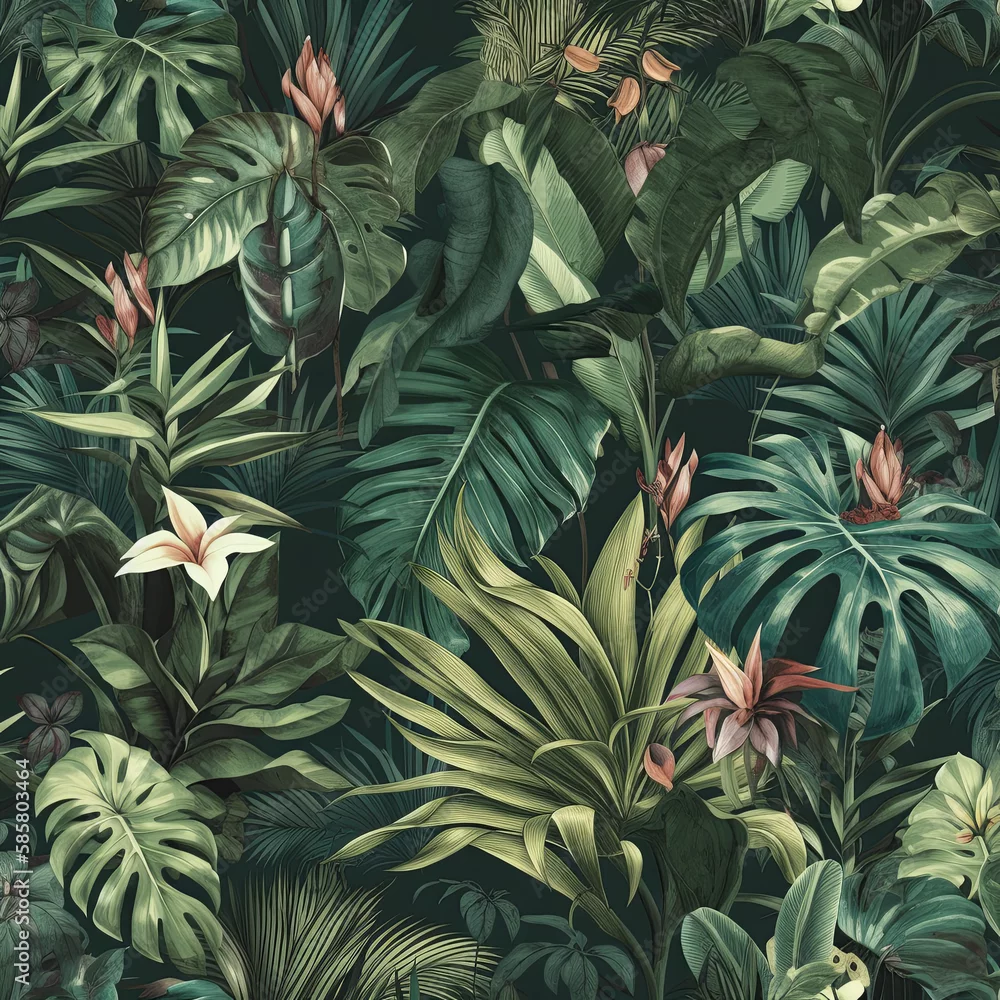 Obraz Tło z egzotycznej tropikalnej dżungli, wygenerowane przez sztuczną inteligencję