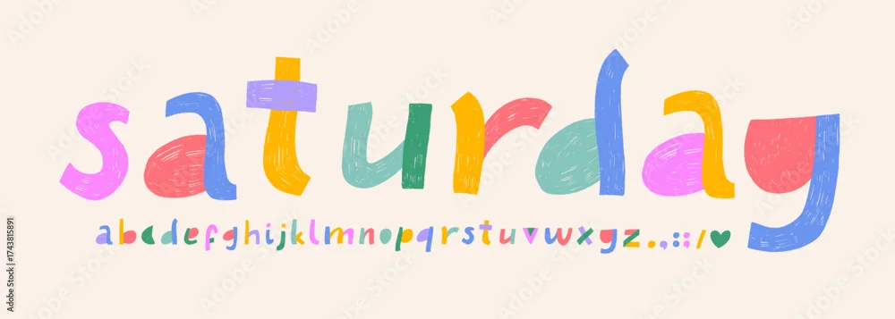 Crayon drawn funky font alphabet. Colorful typography and playful uppercase letters for school and party design. Perfect for creating happy, engaging text for children books, kindergarten materials.
