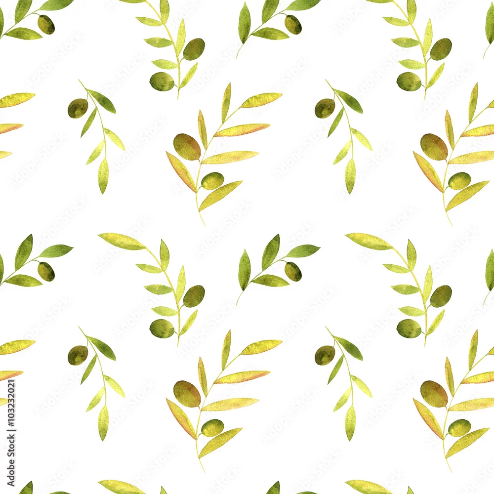 Obraz akwarela bezszwowe wzór z oliwek, liści i gałęzi
