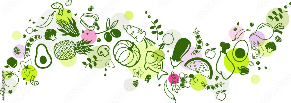 Obraz banner żywności zielony - zdrowe i kolorowe - ilustracji wektorowych
