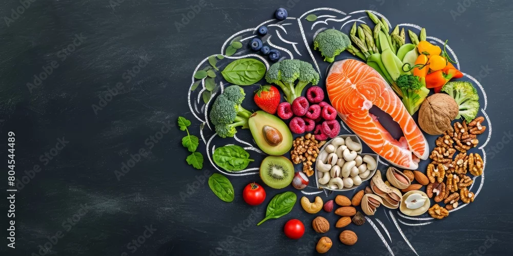 Obraz Chalk hand drawn brain picture with assorted food for brain health and good memory - do restauracji - Picturewall.pl