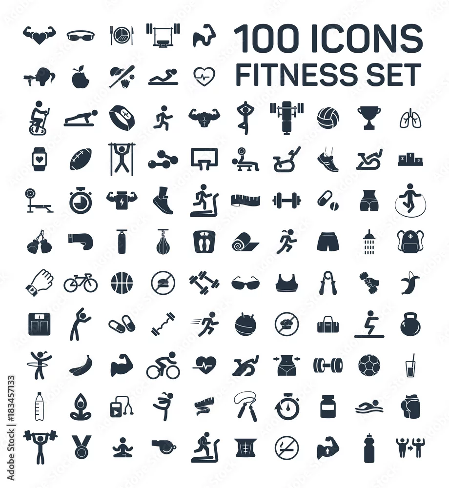 Obraz fitness and sport 100 isolated icons set on white background - do siłowni - Picturewall.pl