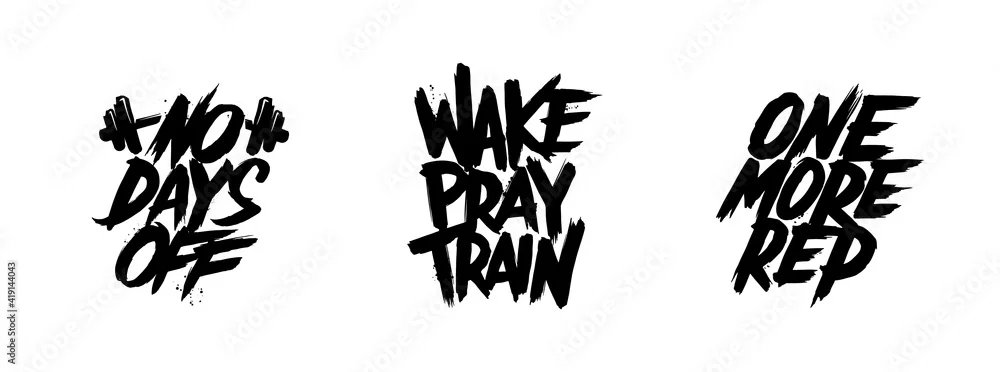 Obraz Gym motivation. Set of gym workout motivation graphics, logos, labels and badges. Typography lettering.