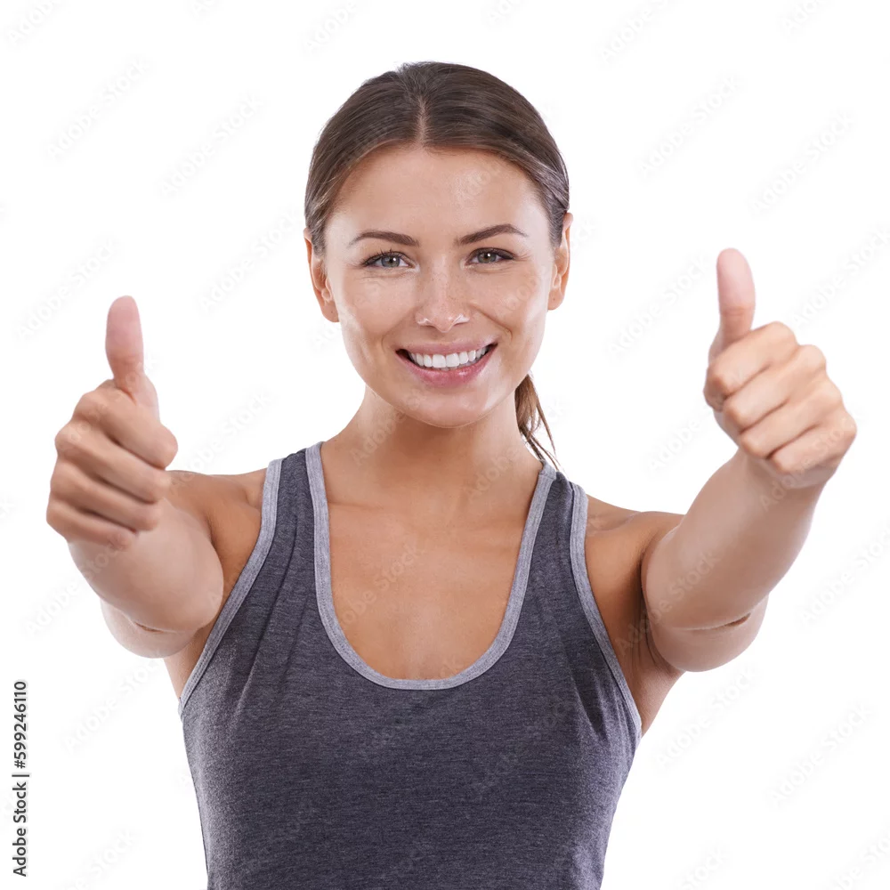 Obraz Shes got a positive attitude. Portrait of a positive young woman showing you the thumbs up. - do siłowni - Picturewall.pl