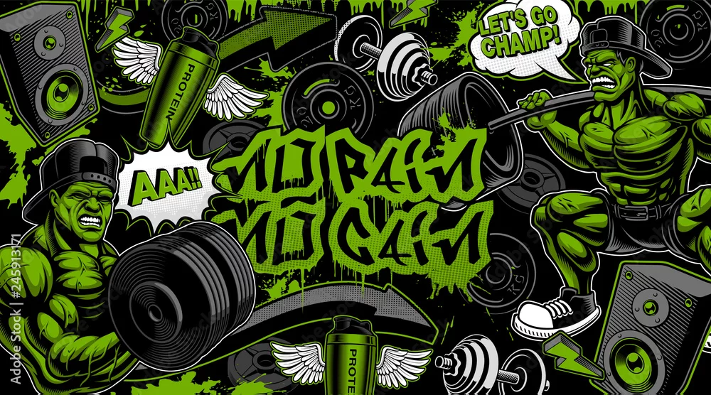 Obraz Colorful background for the gym in graffiti style