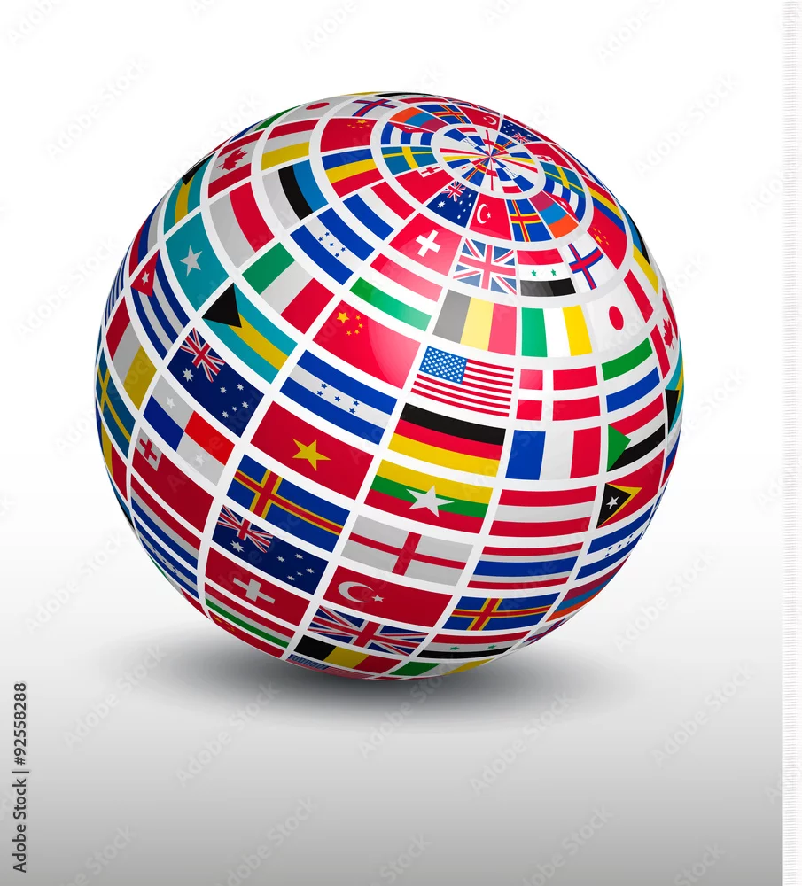 Obraz Kula ziemska wykonana z flag świata. Wektor.