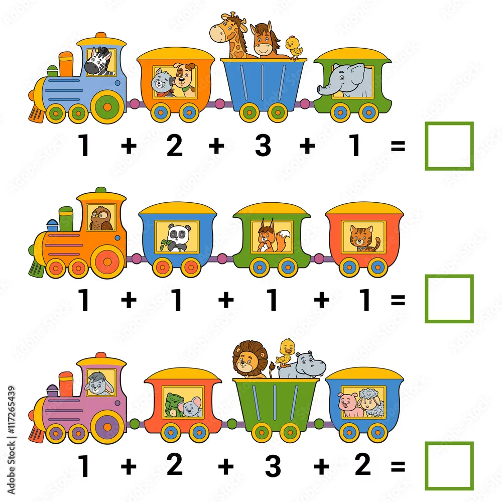 Obraz Liczenie gra edukacyjna dla dzieci. Arkusze dodawania