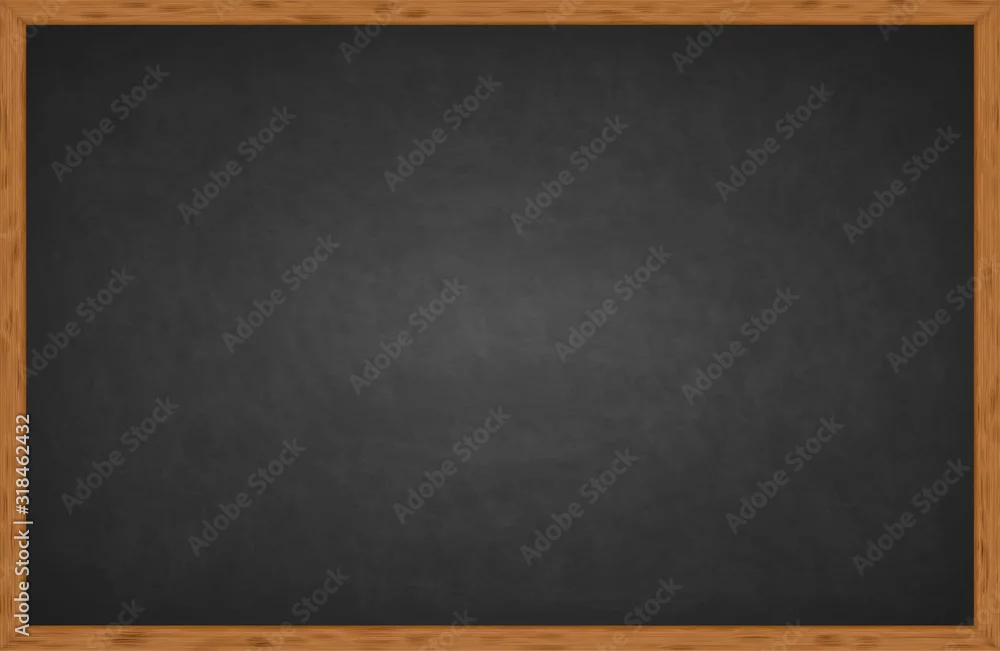 Obraz Rubbed out dirty chalkboard. Realistic black chalkboard with wooden frame isolated on white background. Empty school chalkboard for classroom or restaurant menu. Template blackboard for design
