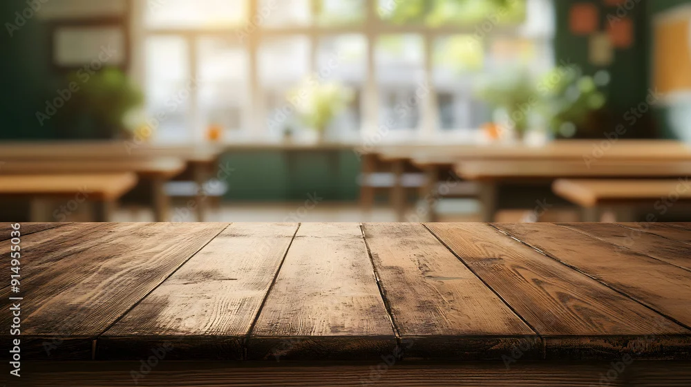 Obraz wooden table on the background of school desks, school atmosphere, background for school, school classroom