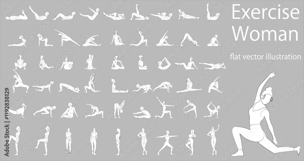 Obraz Flat vector illustration collection pack of women doing yoga and pilates