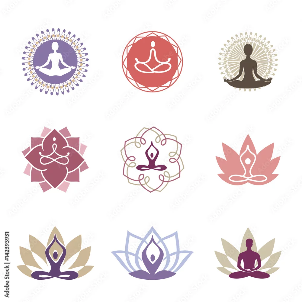 Obraz Yoga Logos / Vector yoga icons and line badges, graphic design elements or logo templates for spa center or yoga studio - do szkoły jogi - Picturewall.pl