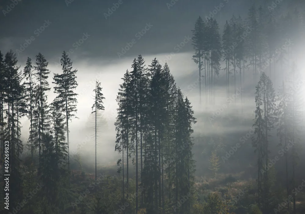 Obraz Jesienne mgły w lesie - Beskidy