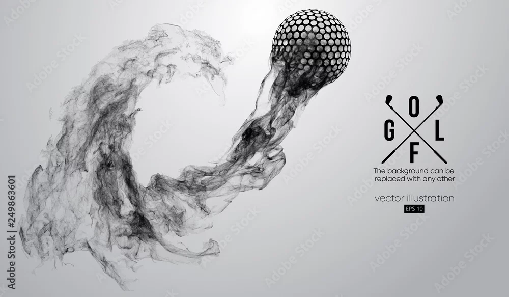 Obraz Abstrakcjonistyczna sylwetka piłka golfowa na białym tle od cząsteczek, pyłu, dymu, kontrpary. Gracz w golfa, golfista. Tło można zmienić na dowolne inne. Ilustracji wektorowych
