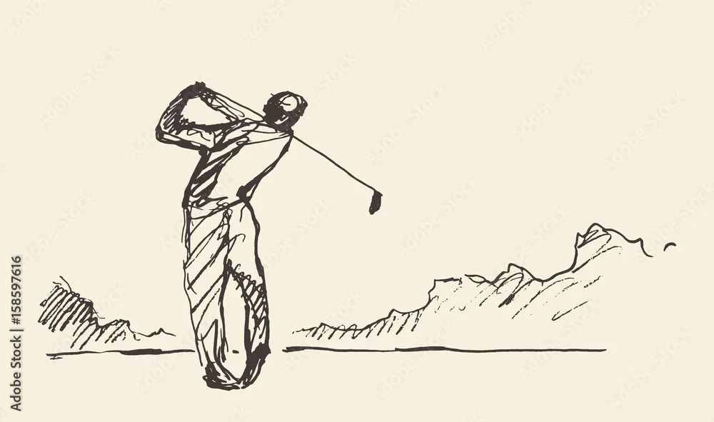 Obraz Kreśli mężczyzna uderza piłkę golfową wektoru ilustrację.