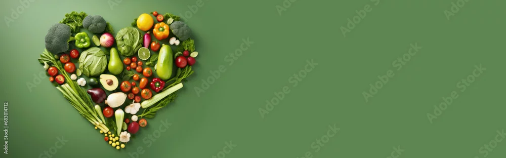 Obraz Banner. vegetables and fruits in the form of a heart. food for Valentine's Day. vegan food. The 14th of February. - jedzenie - Picturewall.pl