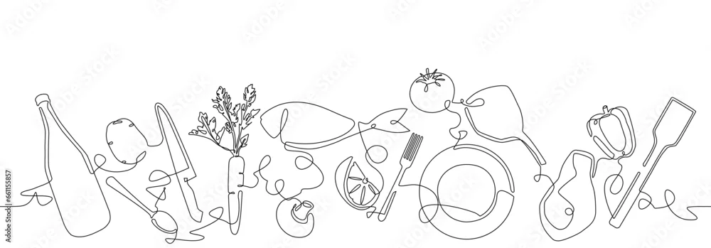 Obraz Cooking process at background. Meal preparation from food ingredients. Vector illustration.