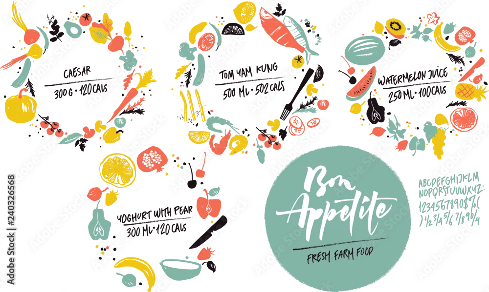 Obraz Set of food frames: sea food, vegetables and fruits. Healthy lifestyle eating. Farmers market - jedzenie - Picturewall.pl