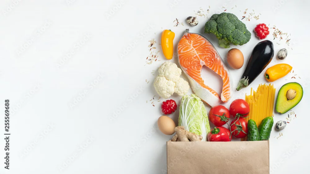 Obraz Supermarket. Papierowa torba pełna zdrowej żywności.