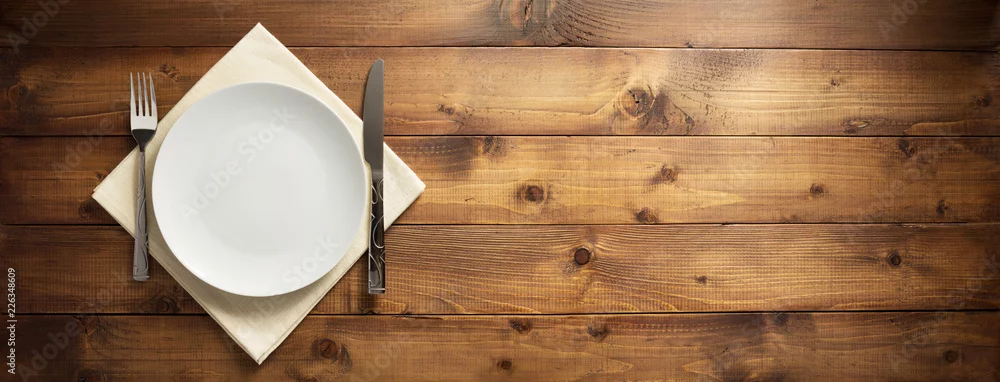 Obraz talerz, nóż i widelec na ściereczce na serwetki - jedzenie - Picturewall.pl