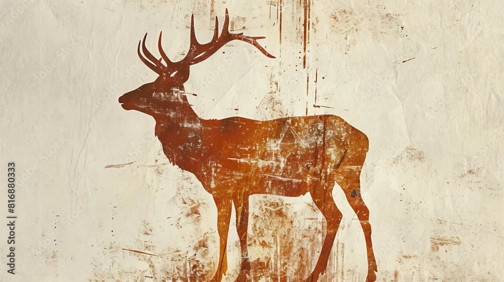Obraz Side View of Deer Cervidae: Minimalist Art with White Background Copy Space - jelenie - Picturewall.pl