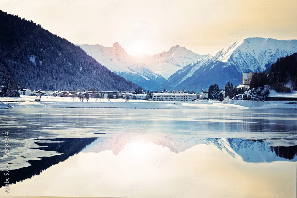 Obraz Jezioro Davos w świetle wieczoru - Szwajcaria