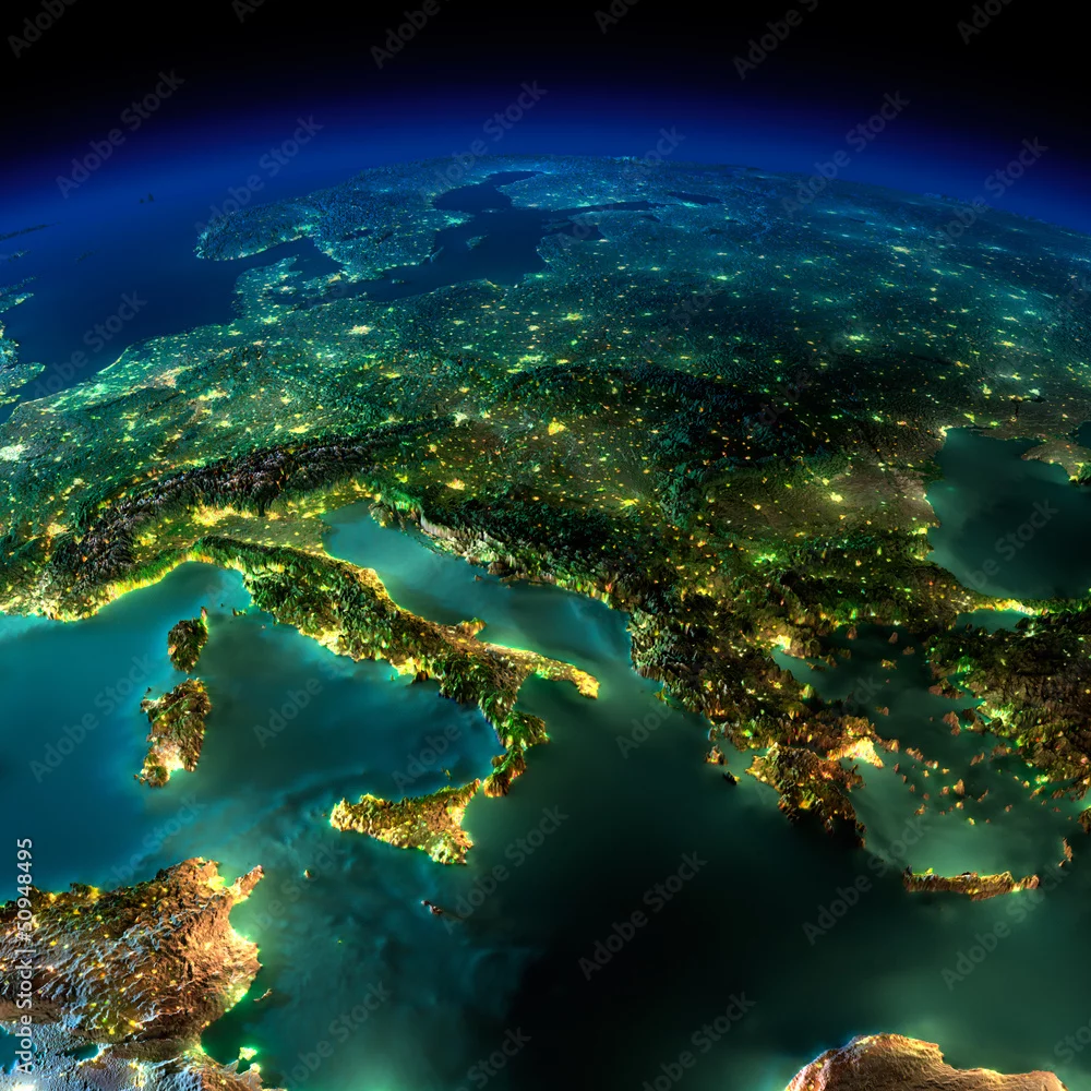Obraz Nocna Ziemia. Kawałek Europy - Włochy i Grecja