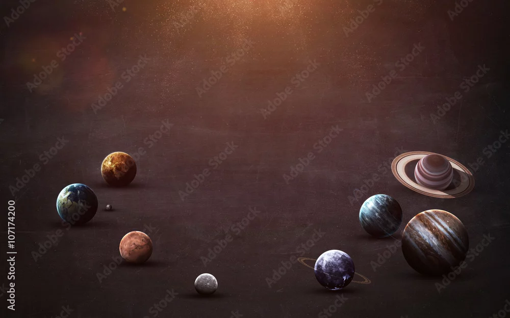 Obraz Obrazy w wysokiej rozdzielczości przedstawiają planety Układu Słonecznego na tablicy. Ten obraz elementy dostarczone przez NASA - kosmos - Picturewall.pl